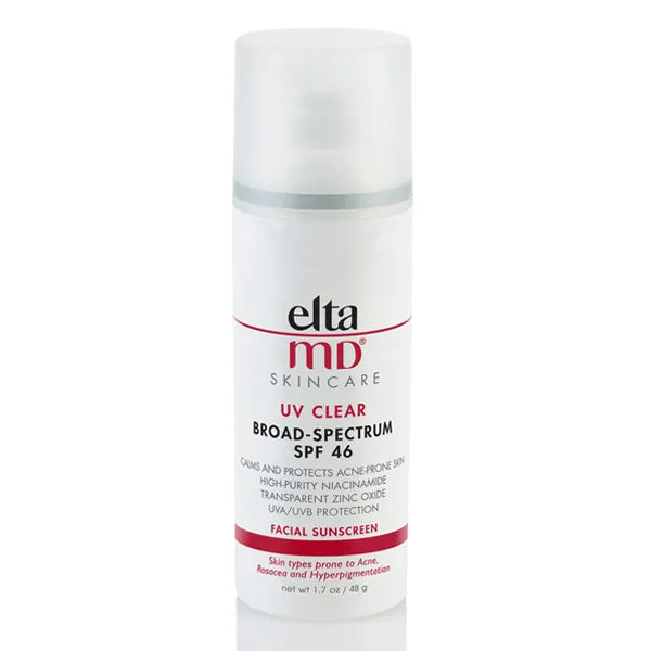 Designed for sensitive skin prone to breakouts, EltaMD UV Clear Broad-Spectrum SPF 46 calms and protects while providing UVA/UVB protection. This lightweight formula contains 9.0% transparent zinc oxide, niacinamide (Vitamin B3), hyaluronic acid, and lactic acid to promote clear, healthy-looking skin. Ideal for use on skin with rosacea, discoloration, or acne.